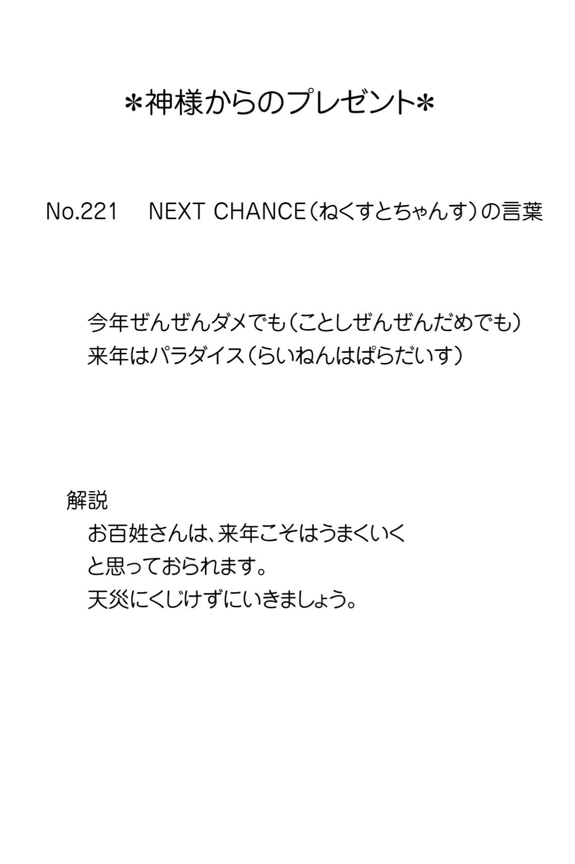 スピリチュアルポストカード #221NEXT CHANCE(ねくすとちゃんす)の言葉