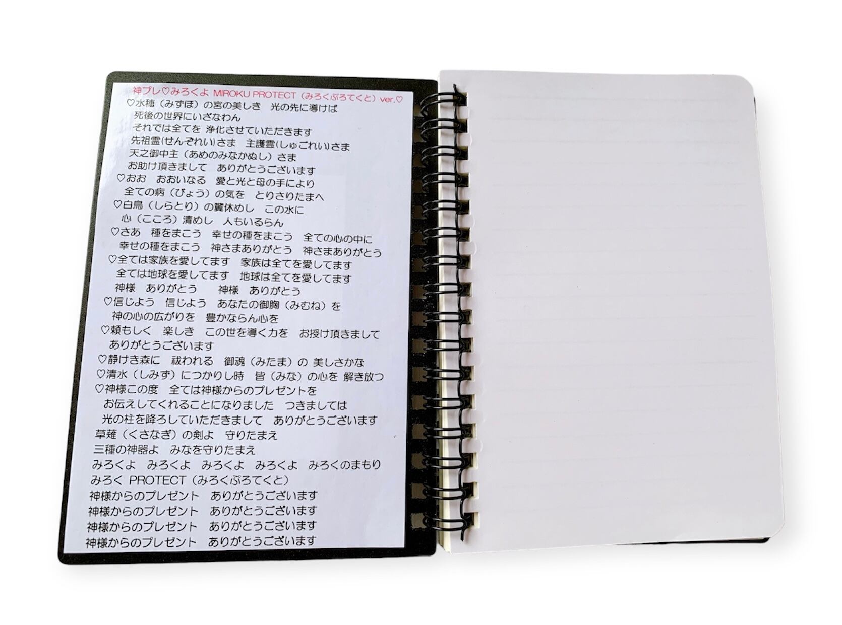 神様からのプレゼントのリングノート(金の鳳凰)になります。ラインストーンがキラキラしてとても綺麗な鳳凰です。神様からのプレゼントの言葉No.1~10と神プレ祝詞ミロクプロテクト入りです。