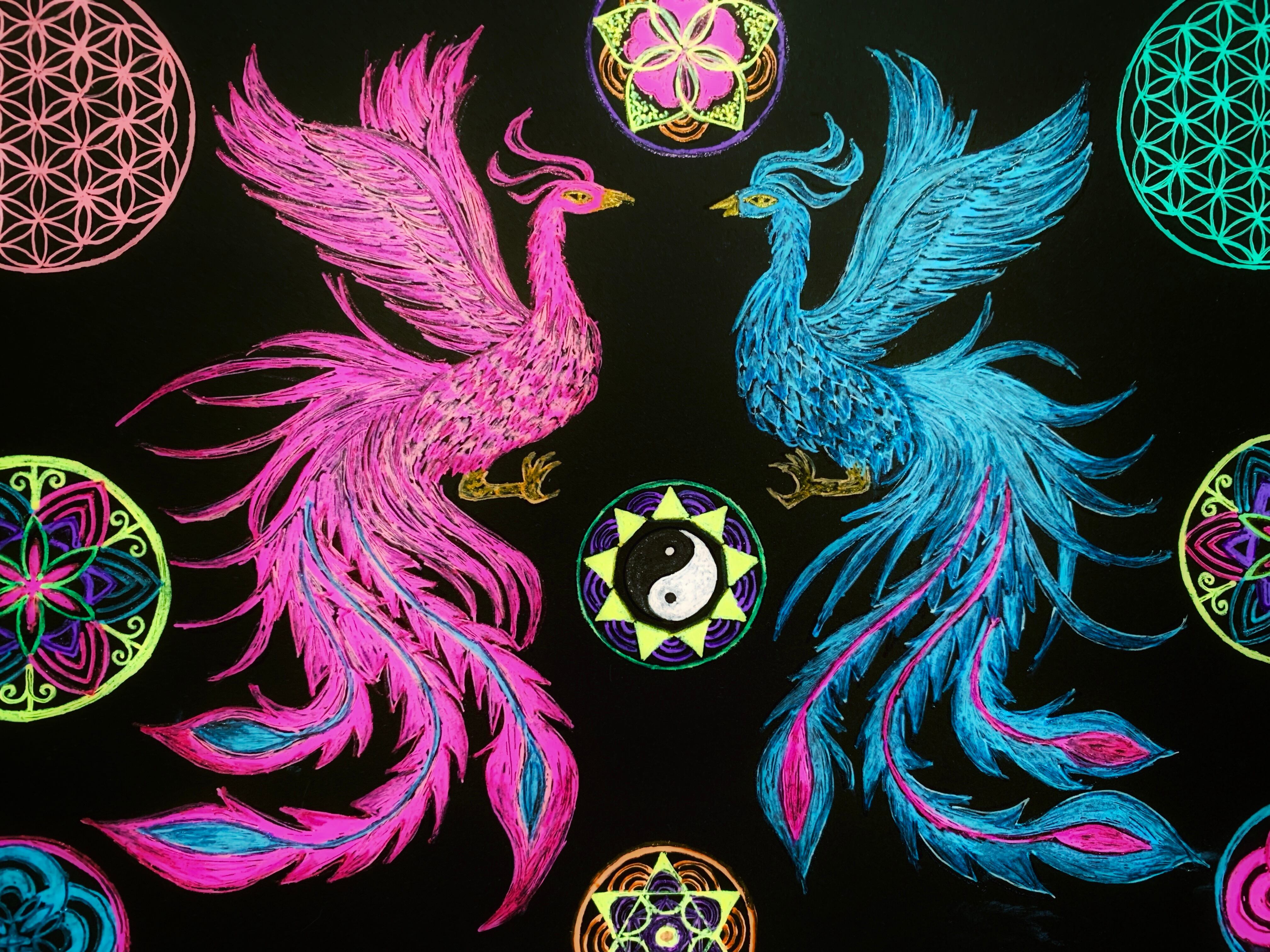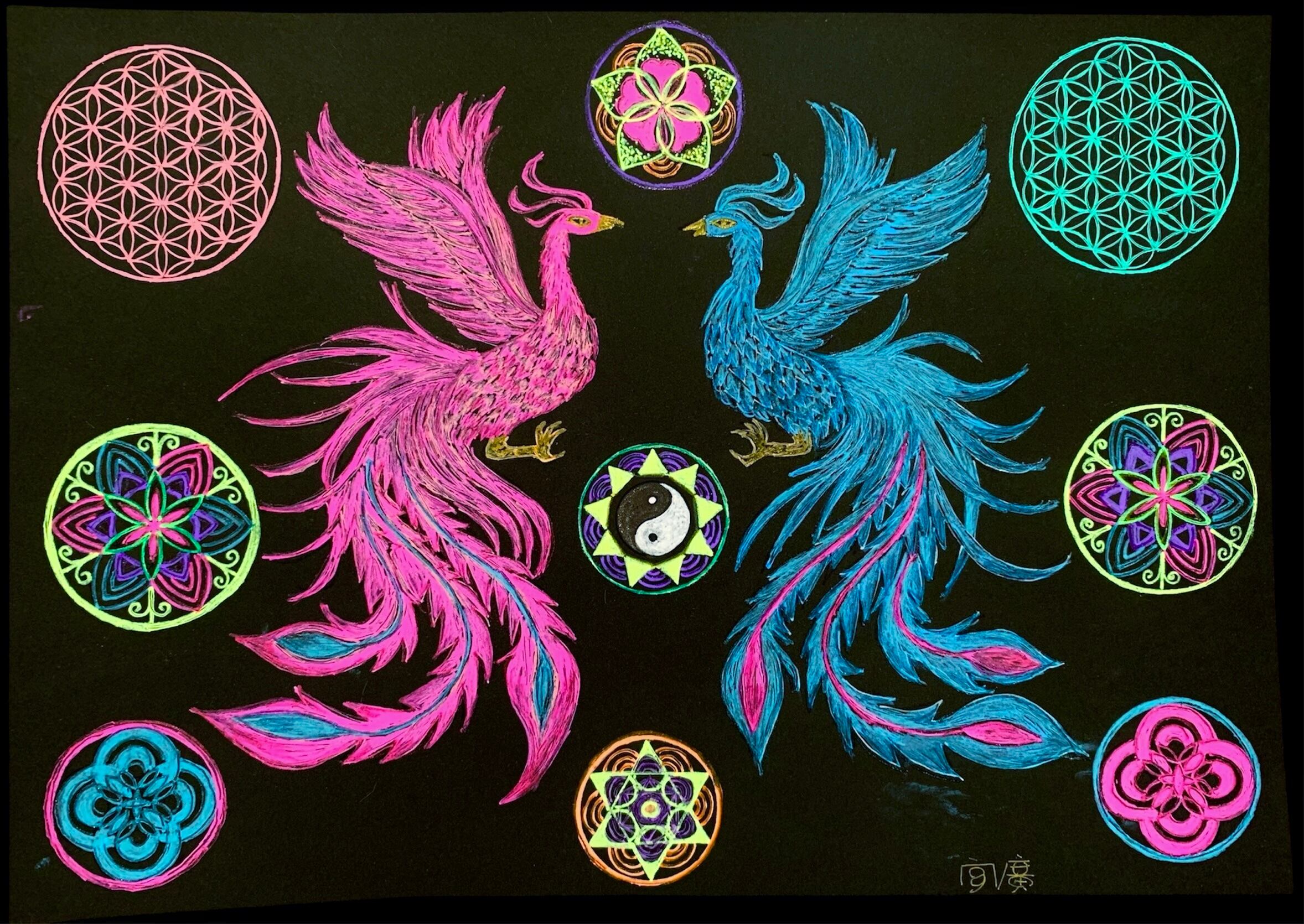 愛桃曼荼羅 鳳凰とフラワーオブライフの曼荼羅になります。量子波動入りです。